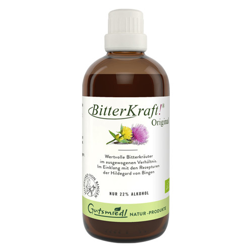 BitterKraft! Original ist eine Bitterstoff-Rezeptur, die auf dem berühmten Kräuterwissen von Hildegard von Bingen basiert.