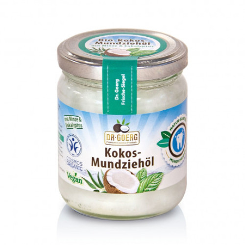 Das hochwertige Dr. Goerg Premium Bio-Kokos-Mundziehöl ist einfach anzuwenden und sorgt durch seine 100 % natürlichen, mit ätherischen Ölen aus Minze und Eukalyptus angereicherten Inhaltsstoffe, für ein sauber gepflegtes, angenehmes und frisches Mundgefühl. Unser Premium Bio-Mundziehöl ist zudem 100 % vegan und mit Cosmos Organic als Bio-Kosmetik zertifiziert. Es wirkt entzündungshemmend und hat einen exzellent-minzig-frischen Geschmack. Bei regelmäßiger Anwendung vor dem Zähneputzen kann das Ölziehen langfristig für einen frischen Atem und ein gesundes Zahnfleisch sorgen. Wie für alle unsere Premium Bio-Produkte, verwenden wir auch für unser Premium Bio-Kokos-Mundziehöl nur die besten Rohstoffe aus ausschließlich nachhaltigem Anbau.