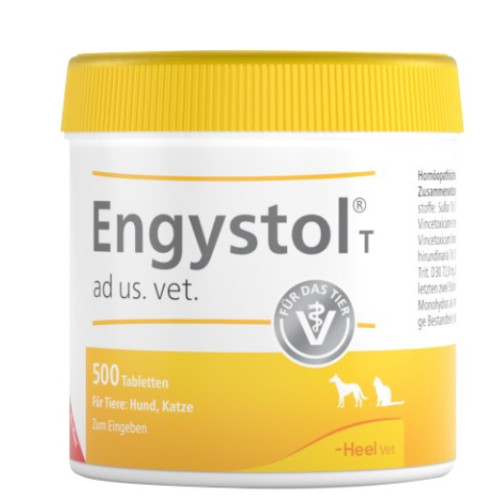 Engystol® T ad us. vet. sollte ohne tierärztlichen Rat nicht über einen längeren Zeitraum angewendet werden. Engystol® T ad us. vet. ist ein registriertes homöopathisches Arzneimittel, daher ohne Angabe einer therapeutischen Indikation.