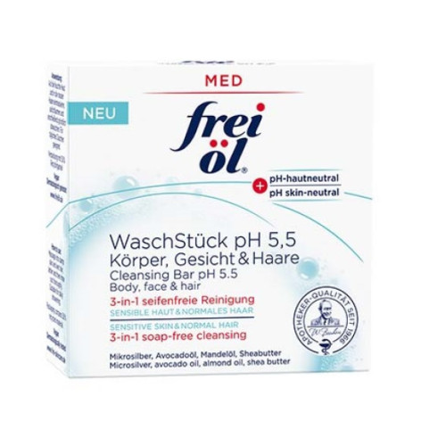 Das milde frei öl® MED WaschStück pH 5,5, entwickelt für Körper, Gesicht und Haare, ist die umweltschonende, pflegende Reinigung. Die seifenfreie Formel ist besonders zart zur Haut,