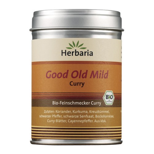 Herbaria Good Old Mild Curry ist eine klassische Bio-Curry-Mischung mit bekannt typischem Curry-Geschmack für die perfekte Currywurst, ein leckeres Curry-Huhn oder Geschnetzeltes. Mit ausgewählten Zutaten wie Kurkuma, Kreuzkümmel, Koriander und schwarzer Senfsaat. Das Good Old Mild Curry bietet auch die perfekte Basis für leckere indische Curry-Spezialitäten wie beispielsweise Kichererbsencurry, Palak Paneer, Korma oder Malai Kofta. Der Curry besitzt eine milde Schärfe (Schärfegrad 3 von 10) und ist damit für jeden geeignet.