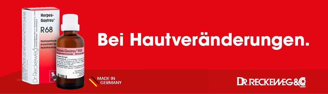 Herpes-Gastreu® R68 Tropfen sind eine Kombination aus vier bewährten homöopathischen Wirkstoffen, bieten eine homöopathische Behandlungsmöglichkeit der krankhaften Hautveränderungen und können die Schmerzen lindern. Die Anwendung des Arzneimittels sollte jedoch nicht ohne vorherige Abklärung der Beschwerden durch den Arzt erfolgen.