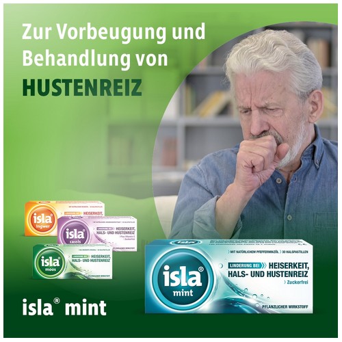 Die Inhaltsstoffe von isla® mint legen sich wie Balsam über die Schleimhaut in Hals und Rachen. So wird die gereizte Schleimhaut vor weiteren Angriffen geschützt und kann sich durch die wohltuende Wirkung schneller erholen, insbesondere bei Beschwerden im Hals durch