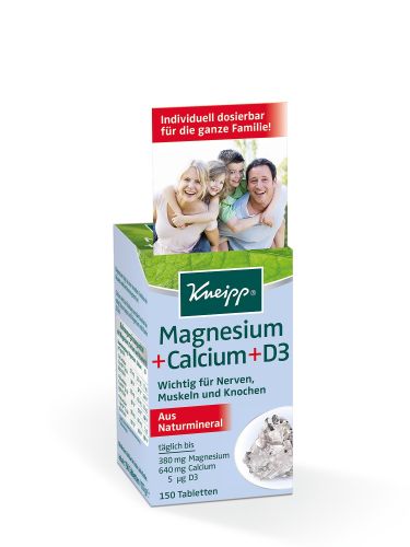 Kneipp® Magnesium + Calcium + D3 enthält reines Magnesium und Calcium aus natürlichem Mineral. Kneipp® Magnesium+Calcium+D3 sind individuell dosierbar und eignen sich deshalb besonders gut für ältere Menschen, sportlich Aktive, Schwangere, Stillende sowie für Kinder und Jugendliche in der Wachstumsphase. Für eine optimale Versorgung hat sich die Zufuhr einer kombinierten Magnesium-Calcium-Nahrungsergänzung bewährt. Das haben ernährungsphysiologische Untersuchungen bestätigt