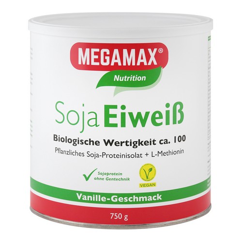 Die biologische Wertigkeit von pflanzlichem Eiweiß ist gegenüber dem tierischen wie Milcheiweiß, Lactalbumin oder Molkeneiweiß geringer, weil dieses nicht das vollständige Aminosäurespektrum aufweist. So ist zum Beispiel Sojaei­weiß arm an L-Methionin, einer essentiellen Aminosäure.Aus diesem Grund haben wir unserem Megamax Soja Eiweiß die Aminosäure L-Methio­nin zugesetzt, so dass die biologische Wertigkeit in etwa der des Eiproteins entspricht (100).