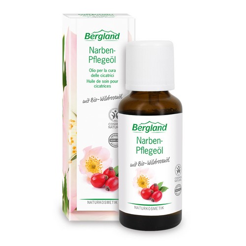 Hochwirksame Wirkstoffe aus der Natur beeinflussen das Narbenbild positiv. Bio Wildrosenöl (auch Hagebuttenkernöl genannt) und Bio-Johanniskrautöl halten das Gewebe geschmeidig und belastungsfähig und sorgen für eine feinere Hautstruktur. Die etherischen Öle Geranium, Immortelle und Lavendel stimulieren die Regeneration der Zellen. Geeignet für bereits vorhandene und für frische Narben.