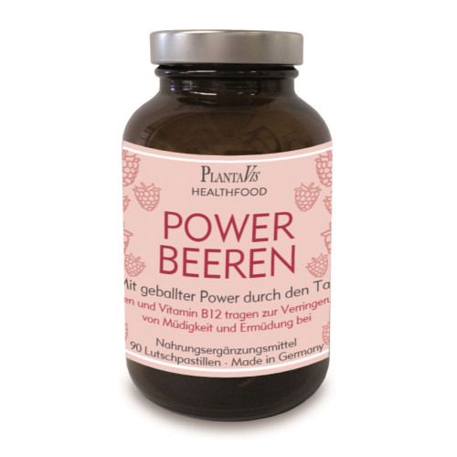 Die PlantaVis PowerBeeren Lutschpastillen enthalten eine Mischung aus verschiedenen Beeren Aromen, Bananen Pulver, Eisen und Vitamin B12 für eine optimale Nährstoffversorgung im Alltag.