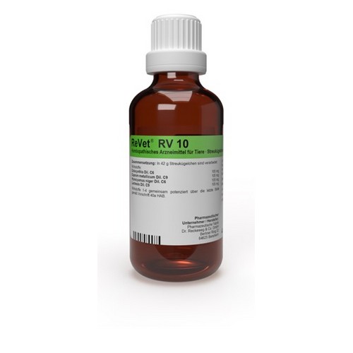 ReVet® RV 10 - oral - (Globuli) wird in etwas Wasser aufgelöst eingegeben. Die Globuli dürfen auch aufgelöst mit etwas Nahrung oder Tränke verabreicht werden. Die Häufigkeit und Dauer der Anwendung richtet sich in erster Linie nach den Grundsätzen der Homöopathie, wonach bei beginnender Besserung seltener dosiert wird und nach Erreichen des Normalzustandes zunächst keine weitere Anwendung erforderlich ist.
