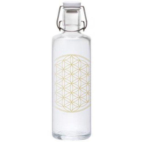 Die Blume des Lebens. Heilige Geometrie mit echtem Gold gedruckt (und darum nicht spülmaschinengeeignet). Hier wird die Reinigung von Hand zur Meditationsübung. Das Design vom soulbottles Mitbegründer Paul Kupfer. 1 Farbe, von Hand spülen.