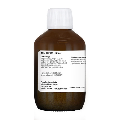Für eine Tagesdosis mit der Dosierkappe 2,38 g = ca.3 ml des Compaktats abmessen, mit mind. 150 ml abgekochtem Wasser heiß übergießen und auflösen. Über den Tag verteilt trinken. Anwendungsdauer: 7 Tage