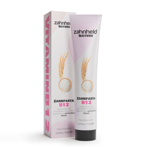Diese Zahnpasta B12 ist angereichert mit natürlichem Vitamin B12, das aus wertvollem Reisöl gewonnen wird. Die Konsistenz wurde für ein angenehmeres Putzgefühl optimiert, der Geschmack harmonischer ausbalanciert. Diese fluoridfreie Zahnpasta pflegt, schützt und reinigt Zähne und Mundraum, revitalisiert empfindliches Zahnfleisch und Zähne, hilft Plaque zu reduzieren und fördert eine gesunde Mundhygiene - für ein langanhaltendes, gesundes und strahlendes Lächeln.